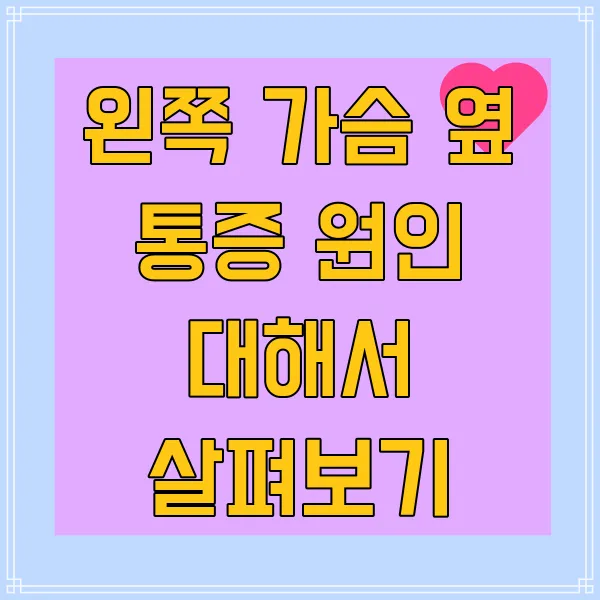 가끔 왼쪽 가슴 옆에 통증이 느껴지면 조금 놀라게 되죠. 그럴 때마다 '이게 뭐지?' 하고 걱정이 앞서곤 합니다. 사실 가슴 통증의 원인은 다양할 수 있는데요, 심장이나 근육, 아니면 단순한 스트레칭 부족 때문일 수도 있습니다. 가벼운 통증부터 심각한 상황까지, 각각 어떤 이유인지 궁금하신 분들을 위해 이번 포스팅에서는 왼쪽 가슴 옆 통증의 원인과 증상들을 살펴보려고 해요. 혹시 다음번에도 그런 증상이 나타날까 염려하지 않도록, 유익한 정보가 되었으면 좋겠습니다. 함께 알아볼까요?