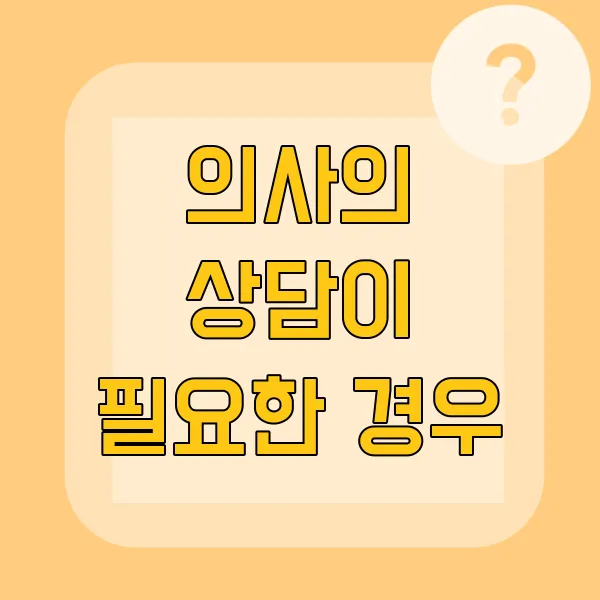 이렇게 다양한 조건들, 증상들이 동반되는 경우에는 의사와의 상담이 꼭 필요합니다. 아무리 사소하게 생각되는 증상이라도, 전문가의 도움을 받는 것이 장기적으로 건강을 지키는 길이 될 것입니다.