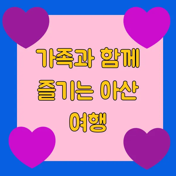 자, 어떠셨나요? 아산은 가족 여행의 모든 조건을 만족시키는 최고의 여행지라고 할 수 있겠죠? 아이들과 함께 잊지 못할 추억을 만들고 싶다면, 지금 바로 아산으로 떠나보세요!✈️ 후회하지 않으실 거예요! 😄