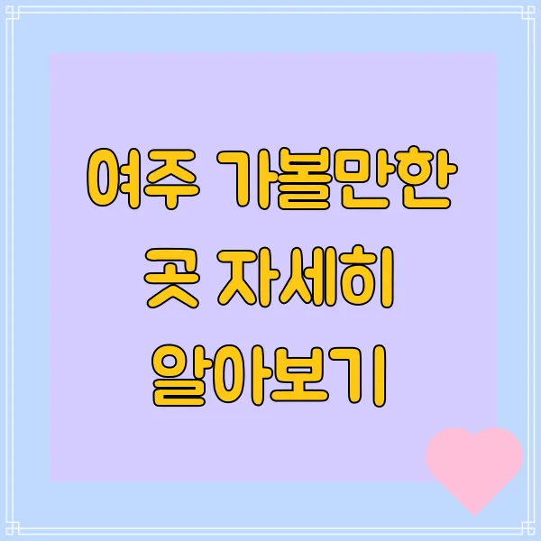 자, 여기까지 여주의 역사와 문화 탐방 코스를 소개해 드렸는데요, 어떠셨나요? 여주는 단순히 관광지만 둘러보는 것이 아니라, 역사의 숨결을 느끼고, 문화의 향기에 취할 수 있는 매력적인 도시랍니다. 여주에서 특별하고 의미 있는 시간을 보내시길 바라며, 다음에는 더욱 흥미진진한 여주 여행 정보로 찾아뵙겠습니다!👋