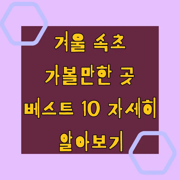 안녕하세요! 겨울 바다 여행, 생각만 해도 설레지 않으세요? 특히 겨울 속초 는 정말 매력 넘치는 곳이랍니다. 파도 소리 들으며 따뜻한 커피 한 잔, 상상만으로도 힐링 되는 기분이에요. 오늘은 겨울 속초 가볼만한 곳 베스트 10 을 자세히 소개해드리려고 해요. 겨울 속초의 낭만 을 제대로 느낄 수 있는 여행 코스부터, 속초 맛집 탐방 까지! 놓치면 후회할 꿀팁들도 잔뜩 준비했으니 기대해주세요! 함께 겨울 속초 여행 계획 세워볼까요?