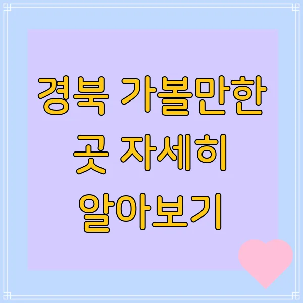 어떠셨어요? 경북 , 생각보다 훨씬 매력적인 곳 이죠? 숨겨진 명소부터 역사의 숨결이 살아있는 유적지, 그리고 아름다운 자연과 맛있는 음식까지! 정말 시간 가는 줄 모르고 여행 계획을 세우게 되지 않나요? 저도 이 글을 쓰면서 당장 경북 으로 떠나고 싶은 마음이 굴뚝같아졌답니다. 혹시 경북 여행 중에 더 궁금한 점이 있다면 언제든 댓글 남겨주세요. 함께 이야기 나누면서 더 풍성한 여행 계획 을 세워보면 좋겠어요! 자, 그럼 이제 짐 싸러 가볼까요?