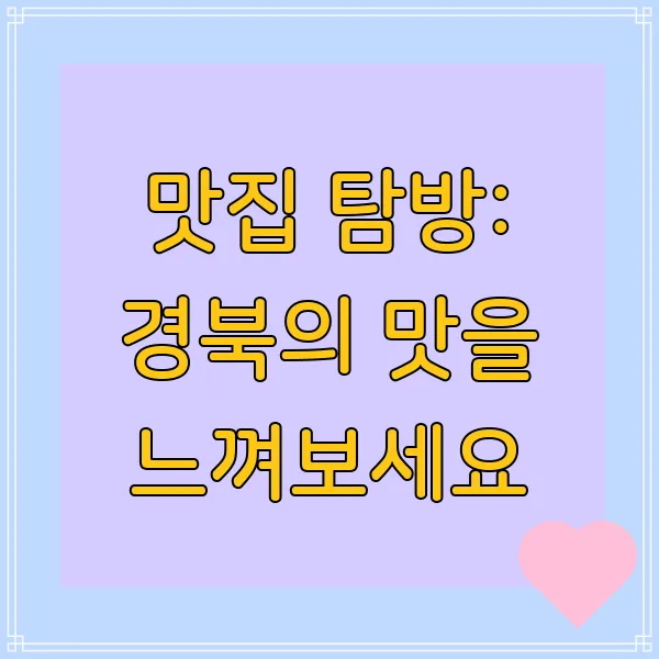 경북 여행, 맛있는 음식과 함께라면 더욱 행복하겠죠? 😄 다양한 맛집을 탐방하며 경북의 맛을 마음껏 느껴보세요! 💕
