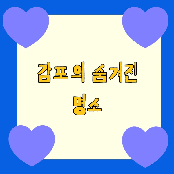 자, 이제 감포 바다의 매력과 맛집 탐방은 어느 정도 마무리되었으니, 본격적으로 로컬처럼 감포를 즐기는 방법을 알려드릴게요! 😎 감포에는 잘 알려지지 않은, 그러나 한 번 발견하면 잊을 수 없는 매력적인 장소들이 숨어 있답니다. 마치 숨바꼭질처럼요! 🤭 이런 곳들을 찾아다니는 재미, 정말 쏠쏠하죠?!