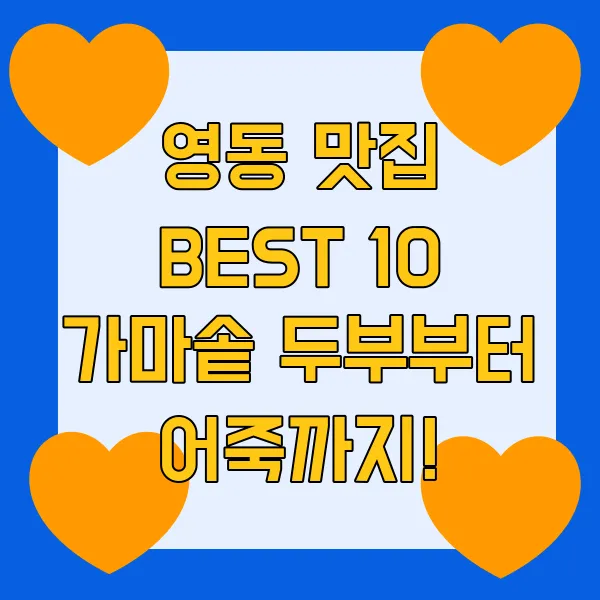 충북 영동 맛집 여행을 계획 중이신가요? 영동은 아름다운 자연경관뿐 아니라 맛있는 음식으로도 유명한 곳이죠! 😋 특히 가마솥 두부, 어죽, 능이버섯 요리, 향토음식 등 다양한 먹거리가 여러분을 기다리고 있답니다. 영동 맛집 BEST 10 , 지금 바로 확인해 보세요! (영동 맛집, 영동군 맛집, 충북 영동 맛집, 영동 여행, 영동 먹거리, 영동 가볼 만한 곳)