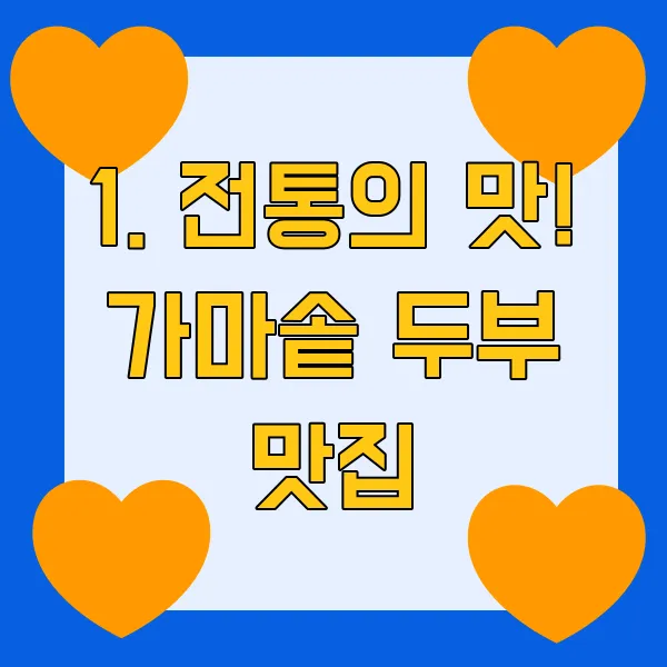 매일 아침 국내산 콩으로 직접 만드는 가마솥 두부의 맛! 상상만 해도 군침이 돌지 않나요? 🤤 몽글몽글하고 따끈한 두부 한 입에 행복이 팡팡 터진답니다! 고소한 두부 본연의 맛을 제대로 느낄 수 있는 곳이에요. 영양 만점에 맛까지 좋은 두부 요리, 놓치지 마세요! 💯
