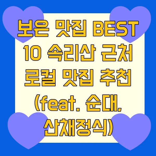 속리산의 아름다운 풍경과 함께 맛있는 음식까지 즐기고 싶으신가요? 보은은 순대와 산채정식으로 유명한 맛집의 고장이랍니다!🤤 등산 후 허기진 배를 채워줄 든든한 보양식부터 정갈한 한정식, 달콤한 간식까지!😋 보은의 숨겨진 맛집들을 지금 바로 만나보세요~! 속리산 근처 로컬 맛집 BEST 10, 지금 공개합니다!