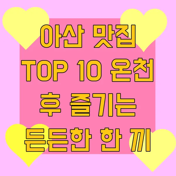 뜨끈뜨끈 온천욕 후 허기진 배를 든든하게 채워줄 아산 맛집을 찾고 계신가요? 😋 아산 온천 여행의 핵심 키워드, 바로 '온천 후 맛집'입니다! 이 글에서는 온양온천, 도고온천 등 아산의 명소 온천과 함께 즐길 수 있는 다채로운 맛집들을 소개합니다. 한정식부터 곱창, 초밥까지, 취향따라 골라 즐기는 아산 맛집 TOP 10! 지금 바로 확인하세요~!!