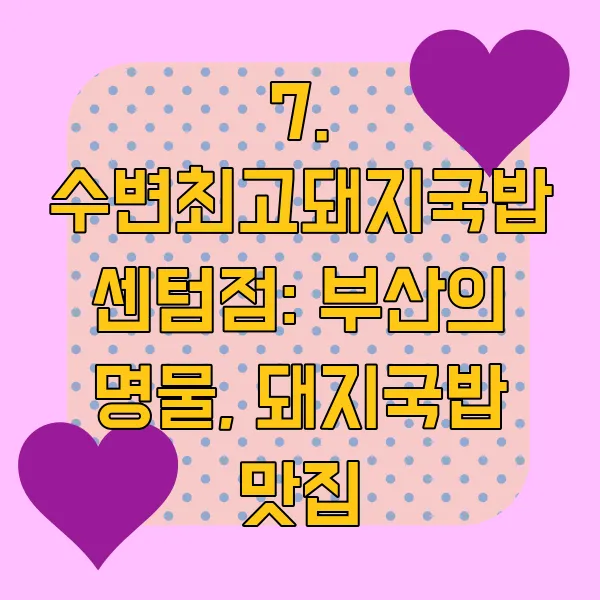 7. 수변최고돼지국밥 센텀점: 부산의 명물, 돼지국밥 맛집